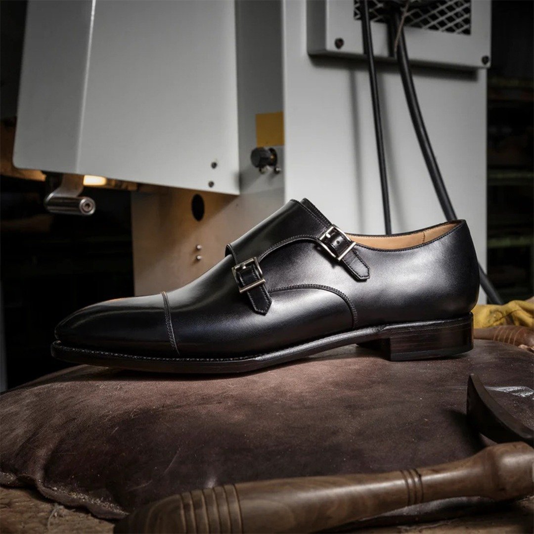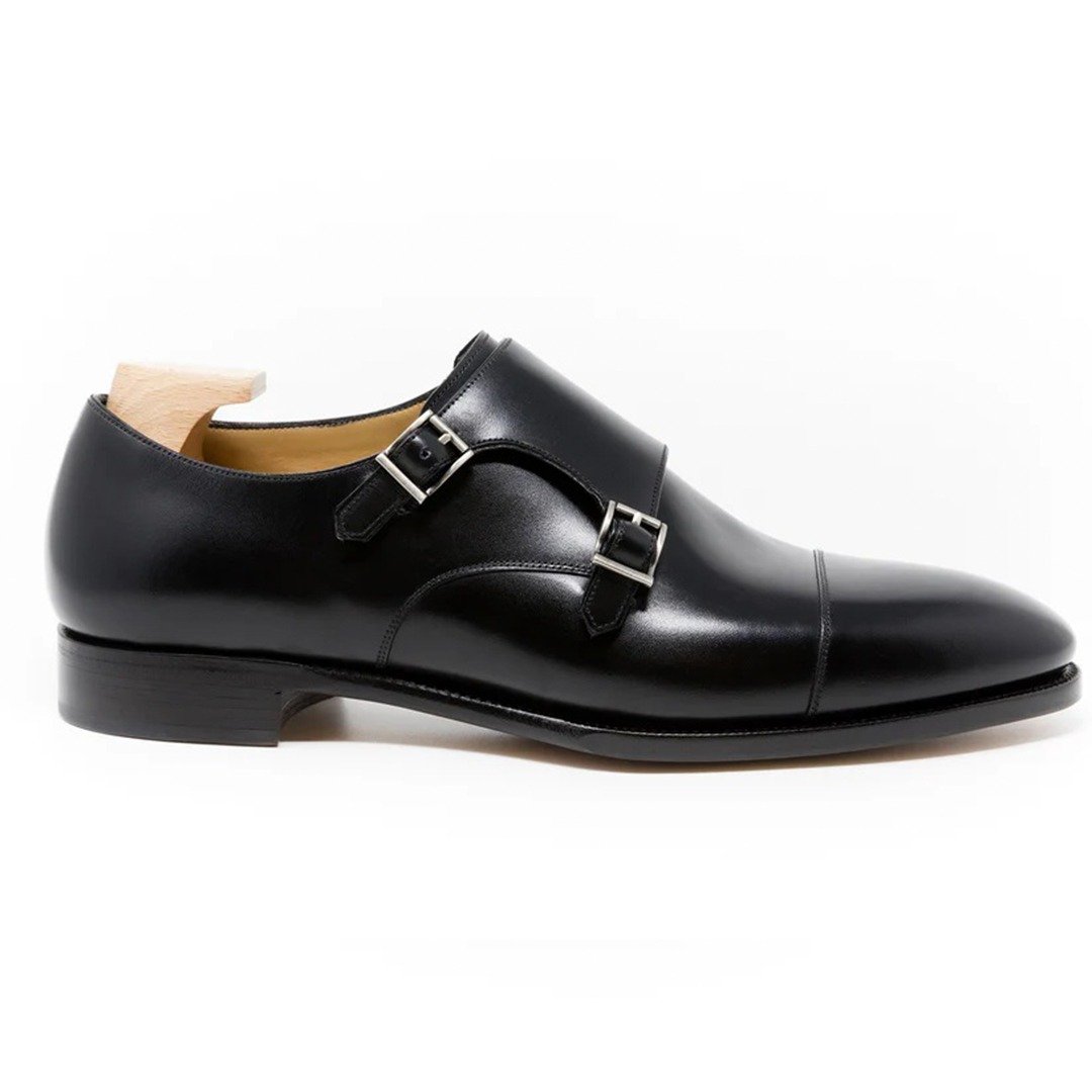 Cap toe double monk made in Boxcalf Leather using French Calf from Anonnay tannery in black color, calf lining with vegetable tanned leather insoles finished with single leather closed channel sole to get more elegant finishing.