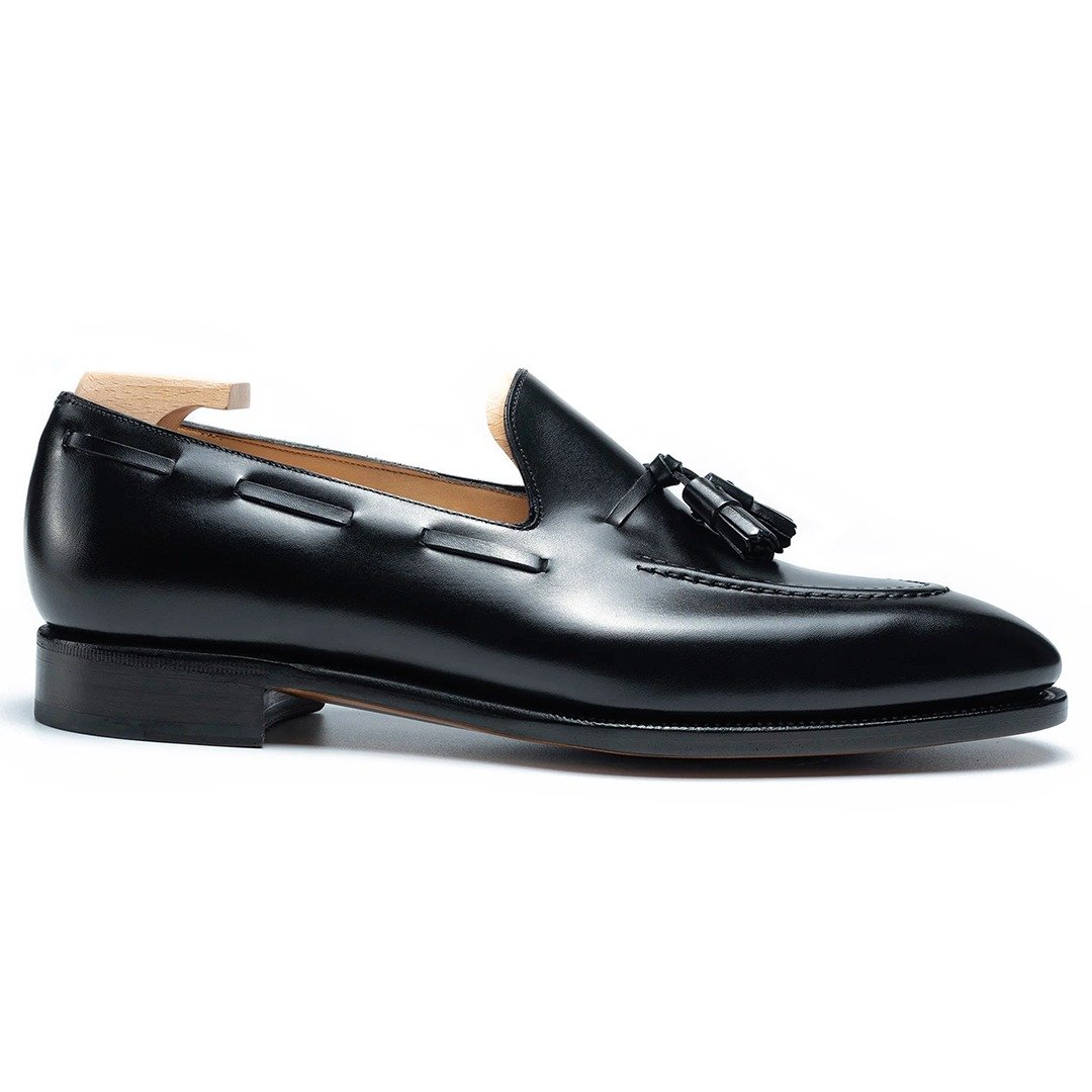 A classic tassel loafer made in black boxcalf and finished with single leather sole.
