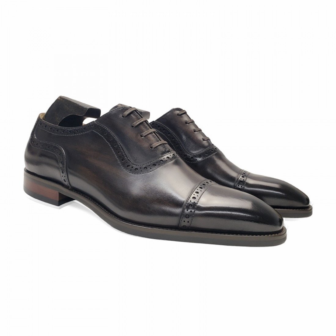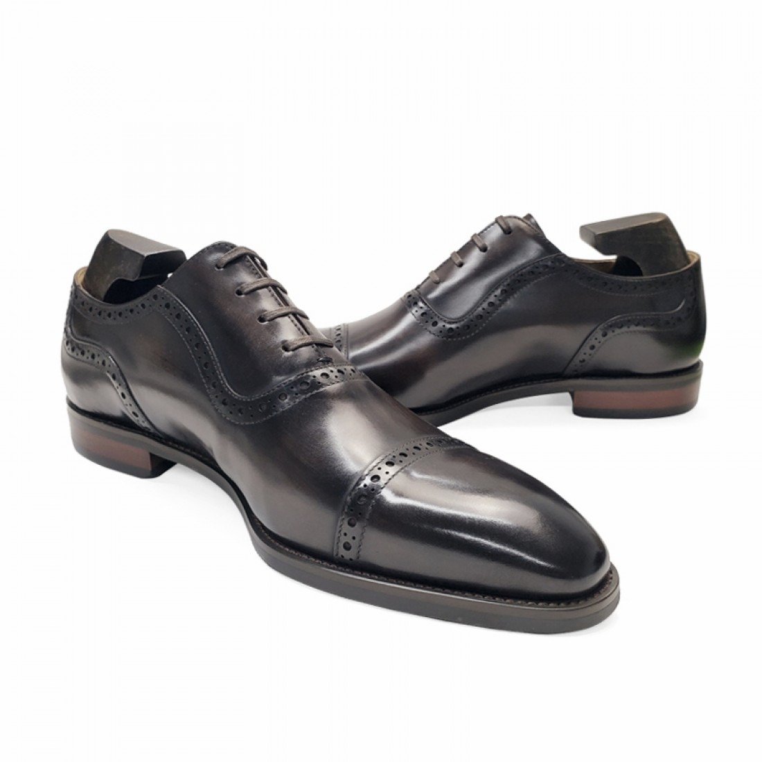 Handmade grain cowhide leather quarter brogue almond cap toe coffee oxford shoe